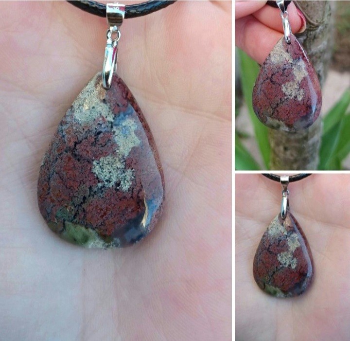 Gros Pendentif AGATE MOUSSE MULTICOLORE Naturelle sur bélière Argent 925