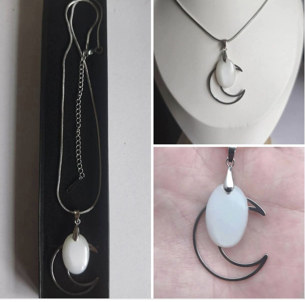 Collier Pendentif PIERRE DU LUNE + Chaîne et breloque Lune en Acier Inoxydable 316 Argent 🌙