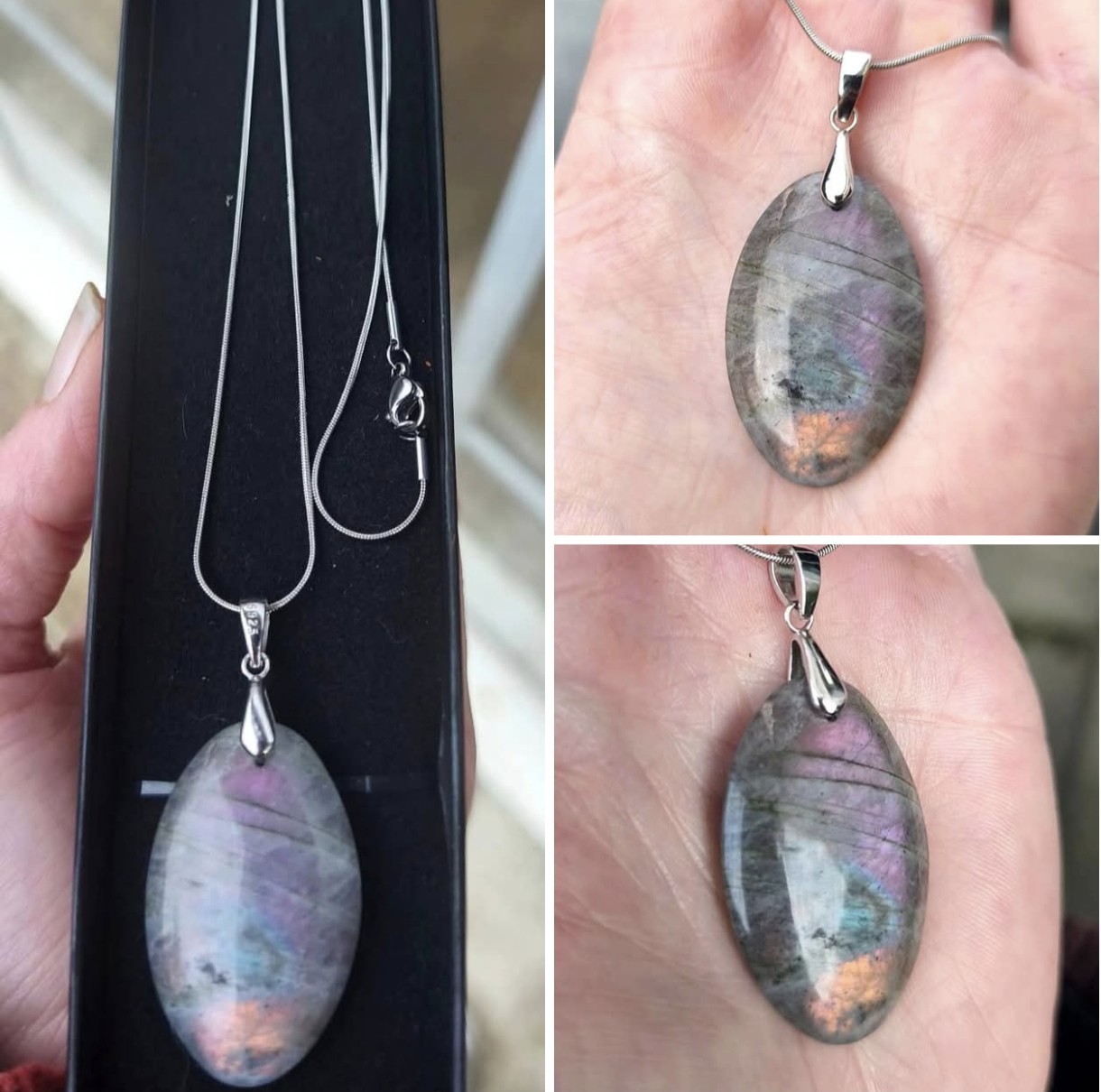 Collier Pendentif LABRADORITE et Chaîne en Acier Inoxydable 316 💖