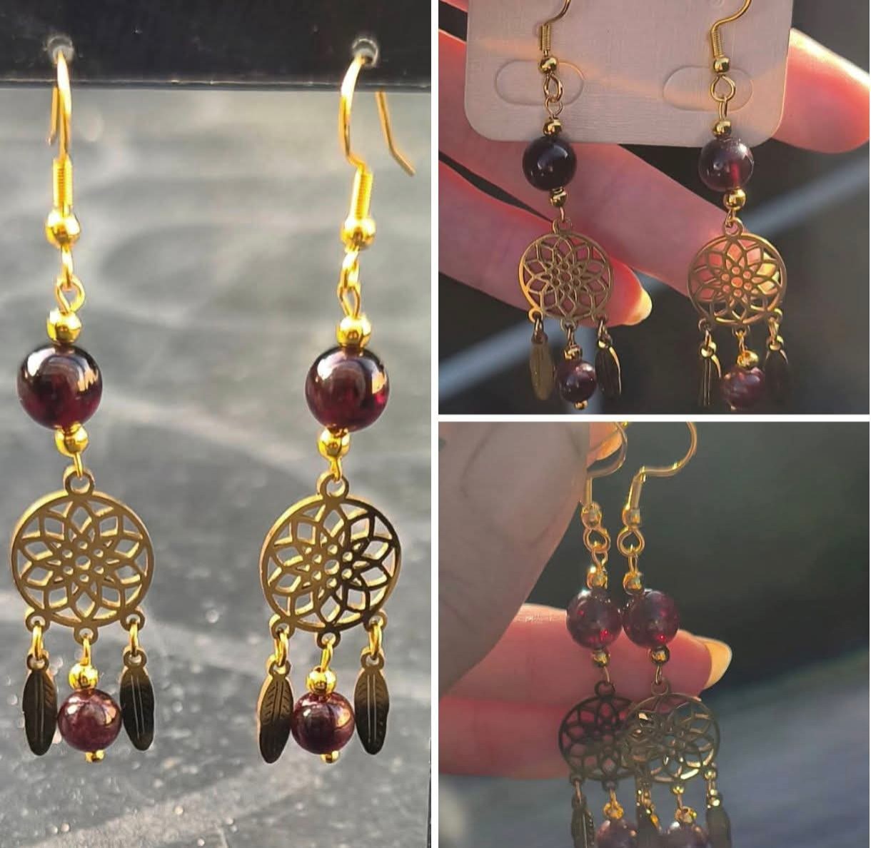 Boucles d'oreilles Acier Inoxydable Dorée GRENAT ALMANDIN NATUREL Attrape rêve 💖