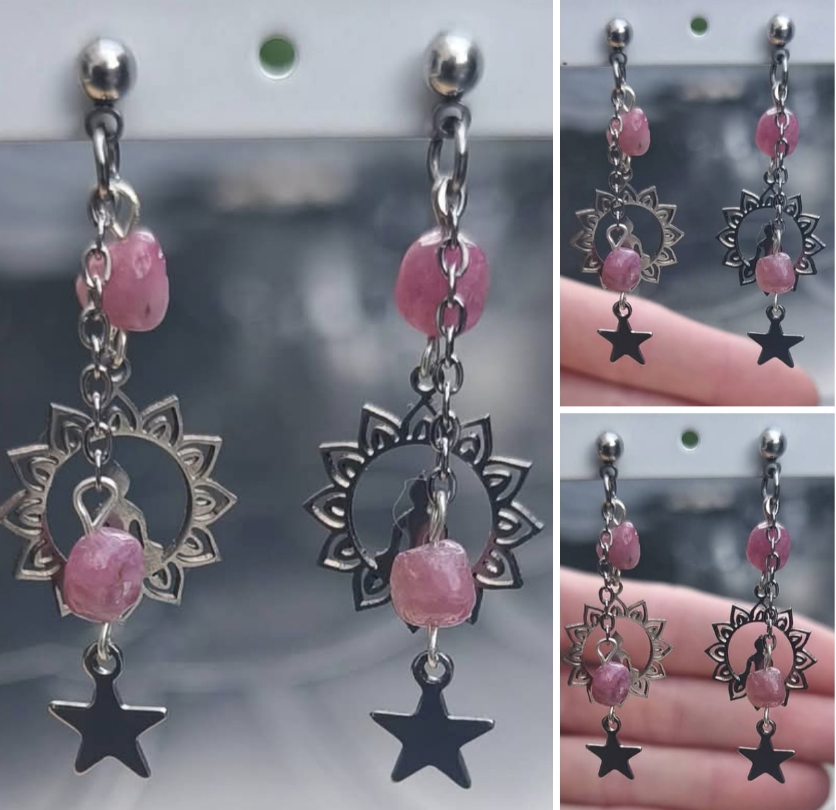 Boucles d'oreilles Acier Inoxydable Boudha Perles Naturelles de TOURMALINE ROSE 💖