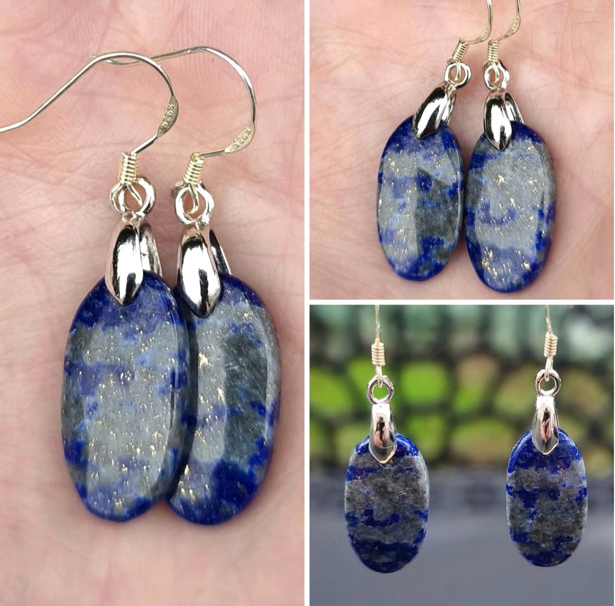 Boucles d'oreilles Argent 925 Cabochons Paire LAPIS LAZULI 💖
