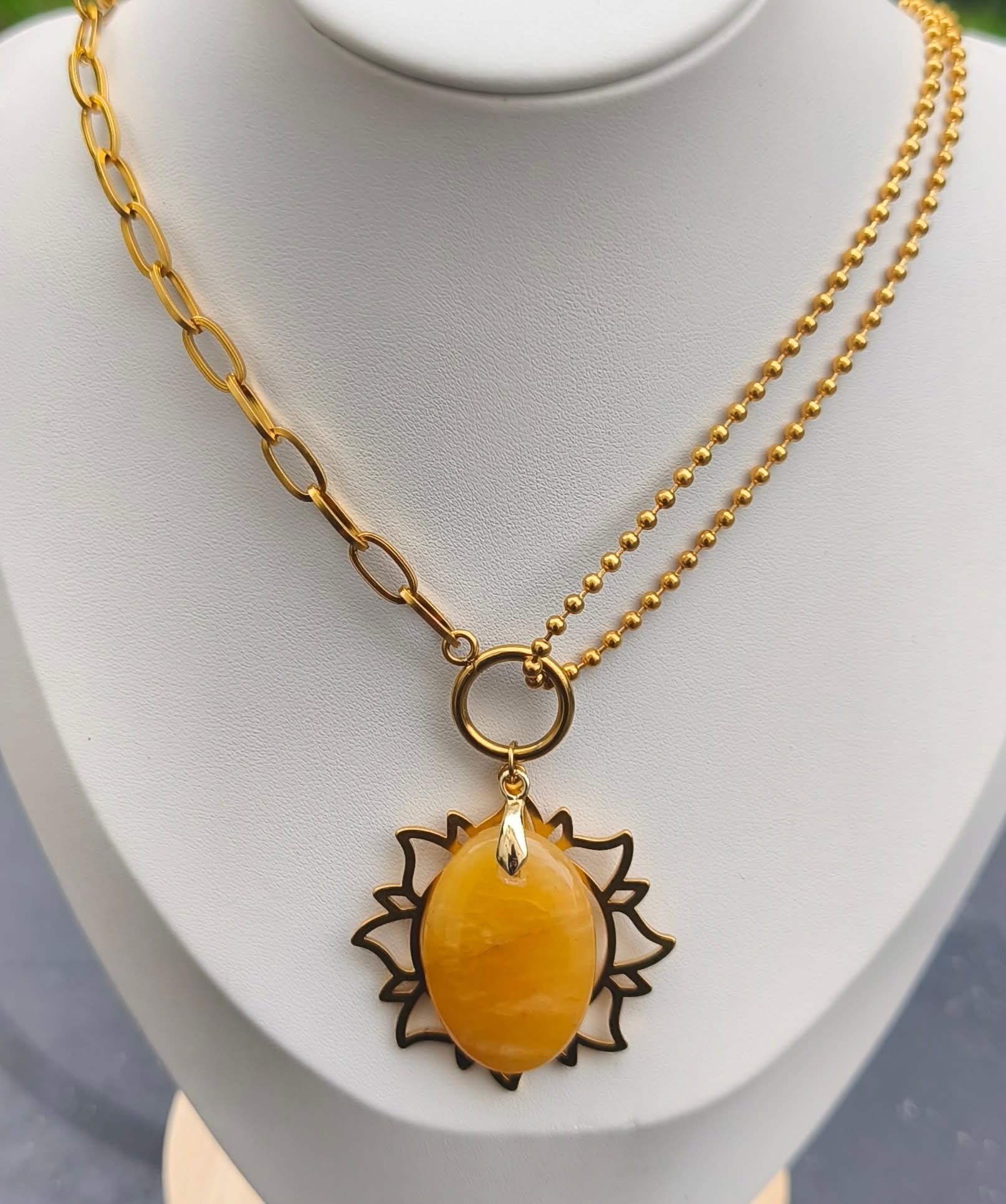 Collier en Acier Inoxydable Dorée SOLEIL/AVENTURINE JAUNE 💖