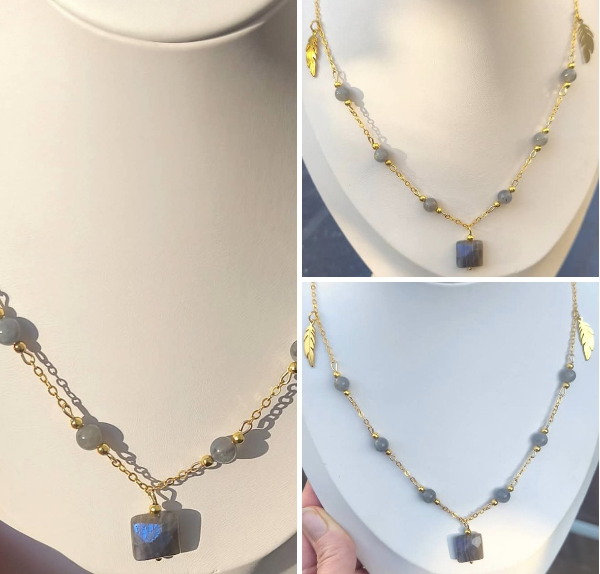 Collier en Acier Inoxydable LABRADORITE 💖 Taille 45 cm