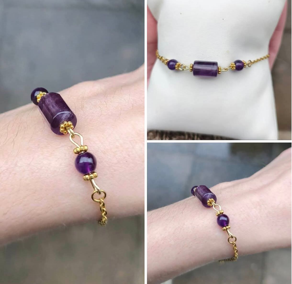 Bracelet en Acier Inoxydable 304 Dorée AMÉTHYSTE 💖
