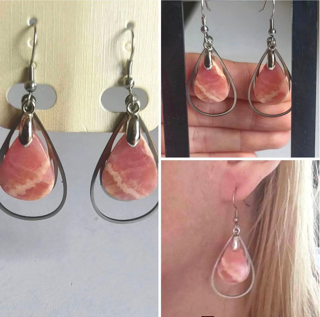 #pierresnaturelles #bouclesdoreillespierresnaturelles #rhodocrosite #bouclesdoreillesacierinoxdydable #lithothérapie #lithotherapiebijoux